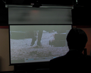 いよいよ2013年2月4日試写の日。オーエス東京ビルに関係者が集まった。